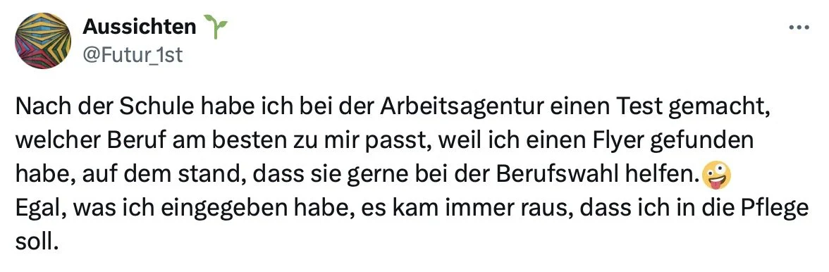 Vielleicht haben deine Eltern oder Lehrer schon eine Idee, was du machen solltest. Aber hör auf dein Bauchgefühl! Dein Weg ist einzigartig, und du solltest das tun, was dich glücklich macht. Auch wenn du mal einen Umweg nimmst – das gehört dazu! Jeder Fehler ist eine Chance, etwas Neues zu lernen.